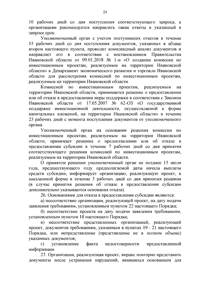 Постановление Правительства Ивановской области от 02.08.2023 N 345-п "Об утверждении Порядка возмещения затрат, указанных в части 1 статьи 15 Федерального закона от 01.04.2020 N 69-ФЗ "О защите и поощрении капиталовложений в Российской Федерации", понесенных организацией, реализующей проект, в рамках осуществления инвестиционного проекта, в отношении которого заключено соглашение о защите и поощрении капиталовложений"
