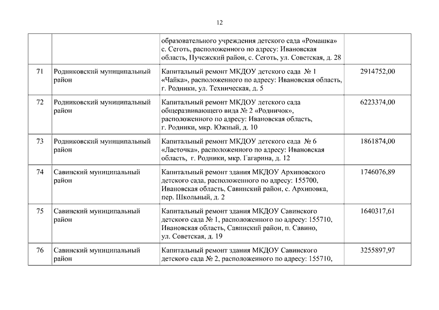 Постановление Правительства Ивановской области от 07.09.2023 N 418-п "О внесении изменения в постановление Правительства Ивановской области от 17.02.2023 N 76-п "О распределении субсидий бюджетам муниципальных образований Ивановской области на капитальный ремонт объектов дошкольного образования в рамках реализации социально значимого проекта "Создание безопасных условий пребывания в дошкольных образовательных организациях, дошкольных группах в муниципальных общеобразовательных организациях" в 2023 году"