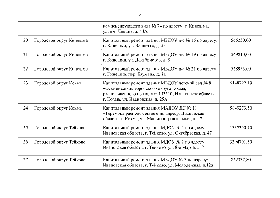 Постановление Правительства Ивановской области от 07.09.2023 N 418-п "О внесении изменения в постановление Правительства Ивановской области от 17.02.2023 N 76-п "О распределении субсидий бюджетам муниципальных образований Ивановской области на капитальный ремонт объектов дошкольного образования в рамках реализации социально значимого проекта "Создание безопасных условий пребывания в дошкольных образовательных организациях, дошкольных группах в муниципальных общеобразовательных организациях" в 2023 году"