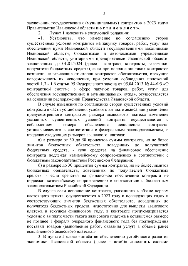 Постановление Правительства Ивановской области от 15.09.2023 N 425-п "О внесении изменений в постановление Правительства Ивановской области от 18.05.2022 N 246-п "О мерах по реализации части 65.1 статьи 112 Федерального закона от 05.04.2013 N 44-ФЗ "О контрактной системе в сфере закупок товаров, работ, услуг для обеспечения государственных и муниципальных нужд"