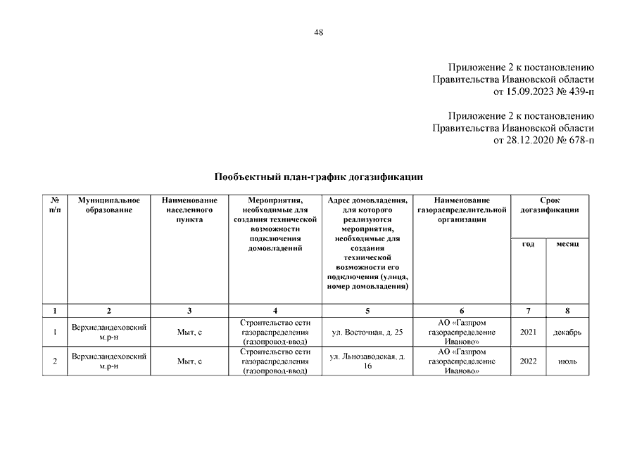 Постановление Правительства Ивановской области от 15.09.2023 N 439-п "О внесении изменений в постановление Правительства Ивановской области от 28.12.2020 N 678-п "Об утверждении региональной Программы газификации жилищно-коммунального хозяйства, промышленных и иных организаций Ивановской области на 2020 - 2030 годы"