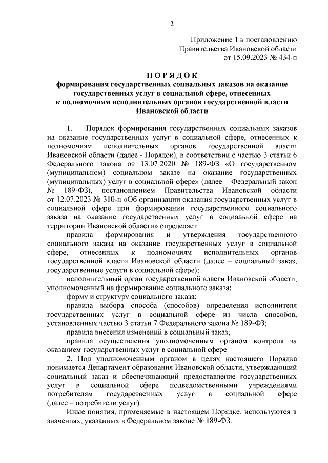 Постановление Правительства Ивановской области от 15.09.2023 N 434-п "О государственных социальных заказах на оказание государственных услуг в социальной сфере, отнесенных к полномочиям исполнительных органов государственной власти Ивановской области" (вместе с "Порядком формирования государственных социальных заказов на оказание государственных услуг в социальной сфере, отнесенных к полномочиям исполнительных органов государственной власти Ивановской области")