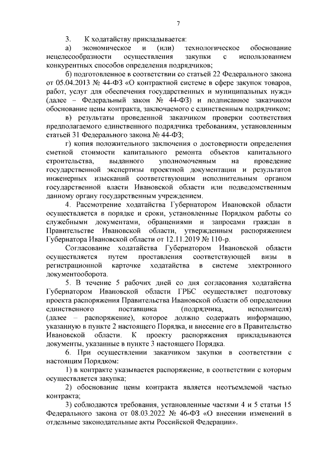 Постановление Правительства Ивановской области от 24.10.2023 N 495-п "О внесении изменений в постановление Правительства Ивановской области от 19.12.2022 N 734-п "Об установлении случая осуществления закупок товаров, работ, услуг у единственного поставщика (подрядчика, исполнителя) для обеспечения нужд Ивановской области и порядке его осуществления" (вместе с "Порядком осуществления закупок товаров, работ, услуг для обеспечения нужд Ивановской области у единственного поставщика (подрядчика, исполнителя) при наличии решения оперативного штаба Правительства Ивановской области по выполнению мероприятий частичной мобилизации в Ивановской области", "Порядком осуществления закупок товаров, работ, услуг для обеспечения нужд Ивановской области у единственного поставщика (подрядчика, исполнителя) при наличии поручения Губернатора Ивановской области об определении единственного подрядчика на выполнение работ по капитальному ремонту объектов здравоохранения Ивановской области")
