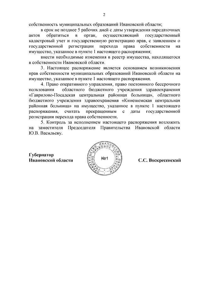 Распоряжение Правительства Ивановской области от 09.11.2023 N 188-рп "О передаче имущества из собственности Ивановской области в муниципальную собственность муниципальных образований Ивановской области" (вместе с "Перечнем имущества, передаваемого из собственности Ивановской области в муниципальную собственность Гаврилово-Посадского муниципального района", "Перечнем имущества, передаваемого из собственности Ивановской области в муниципальную собственность Заволжского муниципального района")