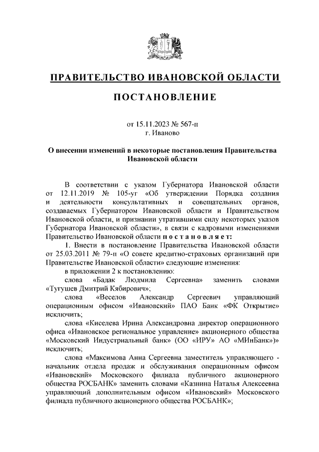 Постановление Правительства Ивановской области от 15.11.2023 N 567-п "О внесении изменений в некоторые постановления Правительства Ивановской области"