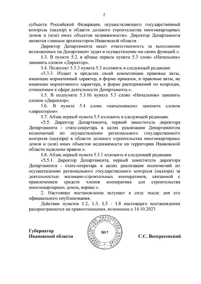 Постановление Правительства Ивановской области от 15.11.2023 N 561-п "О внесении изменений в постановление Правительства Ивановской области от 19.12.2012 N 537-п "Об утверждении Положения о Департаменте строительства и архитектуры Ивановской области"