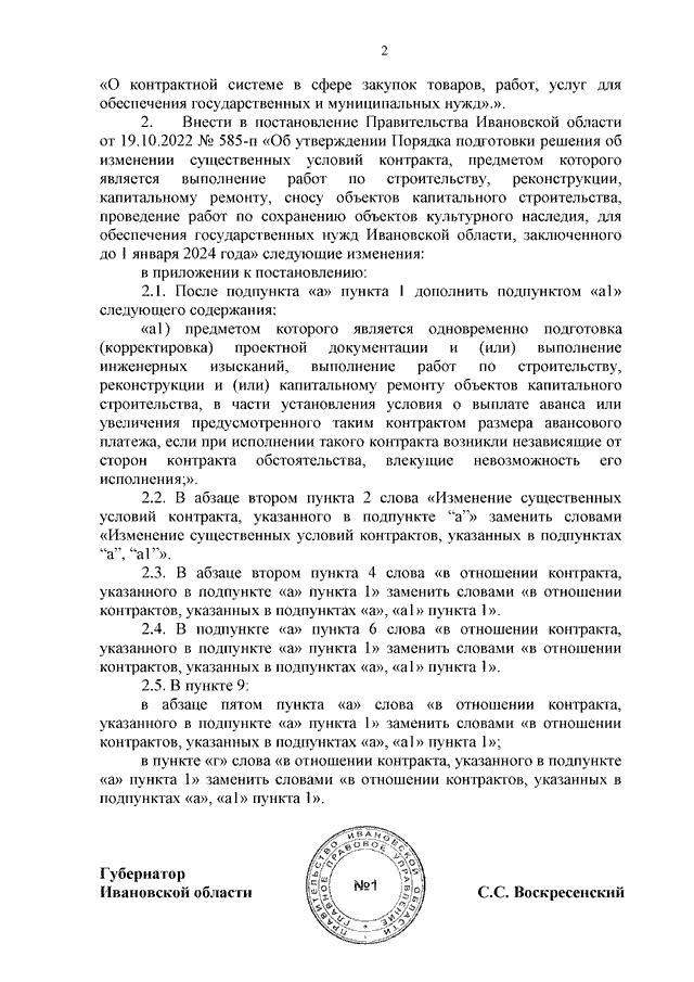Постановление Правительства Ивановской области от 15.11.2023 N 555-п "О внесении изменений в постановления Правительства Ивановской области от 18.05.2022 N 246-п "О мерах по реализации части 65.1 статьи 112 Федерального закона от 05.04.2013 N 44-ФЗ "О контрактной системе в сфере закупок товаров, работ, услуг для обеспечения государственных и муниципальных нужд", от 19.10.2022 N 585-п "Об утверждении Порядка подготовки решения об изменении существенных условий контракта, предметом которого является выполнение работ по строительству, реконструкции, капитальному ремонту, сносу объектов капитального строительства, проведение работ по сохранению объектов культурного наследия, для обеспечения государственных нужд Ивановской области, заключенного до 1 января 2024 года"