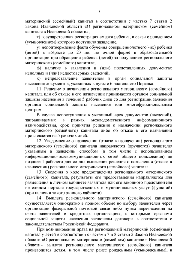 Постановление Правительства Ивановской области от 15.11.2023 N 554-п "О реализации Закона Ивановской области от 02.10.2023 N 41-ОЗ "О региональном материнском (семейном) капитале в Ивановской области" и внесении изменений в некоторые постановления Правительства Ивановской области" (вместе с "Порядком и условиями предоставления регионального материнского (семейного) капитала", "Порядком предоставления, расходования и учета средств, поступающих из областного бюджета на осуществление регионального материнского (семейного) капитала")