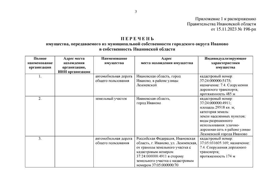 Распоряжение Правительства Ивановской области от 15.11.2023 N 198-рп "О передаче имущества из муниципальной собственности городского округа Иваново, из муниципальной собственности Ивановского муниципального района в собственность Ивановской области"