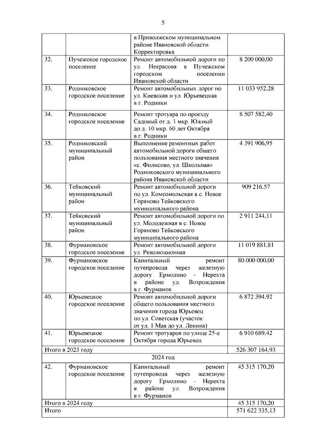 Постановление Правительства Ивановской области от 04.12.2023 N 582-п "О внесении изменения в постановление Правительства Ивановской области от 01.02.2023 N 29-п "О распределении иных межбюджетных трансфертов бюджетам муниципальных образований Ивановской области на строительство (реконструкцию), капитальный ремонт и ремонт автомобильных дорог общего пользования местного значения в 2023 и 2024 годах"