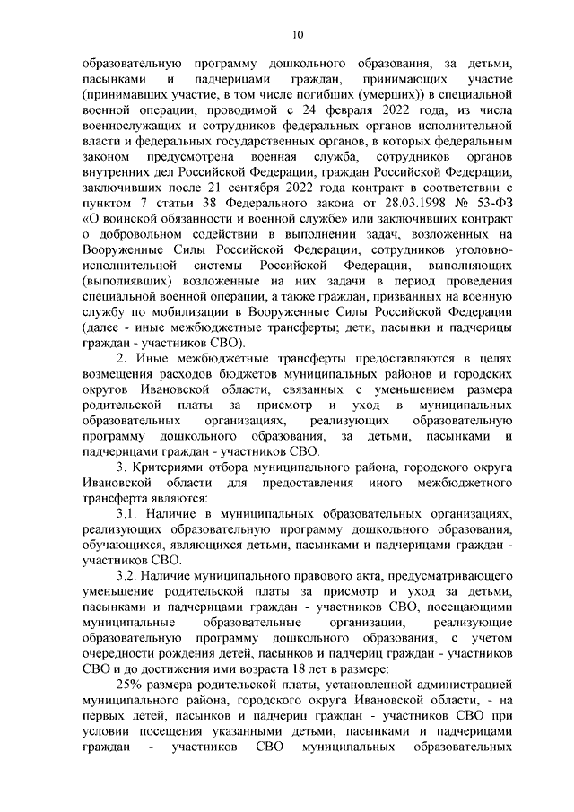 Постановление Правительства Ивановской области от 04.12.2023 N 584-п "О внесении изменений в постановление Правительства Ивановской области от 13.11.2013 N 450-п "Об утверждении государственной программы Ивановской области "Развитие образования Ивановской области" (вместе с "Методикой распределения и правилами предоставления из областного бюджета бюджетам муниципальных районов и городских округов Ивановской области иных межбюджетных трансфертов на ежемесячное денежное вознаграждение за классное руководство педагогическим работникам муниципальных образовательных организаций, реализующих образовательные программы начального общего образования, образовательные программы основного общего образования, образовательные программы среднего общего образования", "Методикой распределения и правилами предоставления из областного бюджета бюджетам муниципальных районов и городских округов Ивановской области иных межбюджетных трансфертов на возмещение расходов бюджетов муниципальных районов и городских округов Ивановской области, связанных с уменьшением размера родительской платы за присмотр и уход в муниципальных образовательных организациях, реализующих образовательную программу дошкольного образования, за детьми, пасынками и падчерицами граждан, принимающих участие (принимавших участие, в том числе погибших (умерших)) в специальной военной операции, проводимой с 24 февраля 2022 года, из числа военнослужащих и сотрудников федеральных органов исполнительной власти и федеральных государственных органов, в которых федеральным законом предусмотрена военная служба, сотрудников органов внутренних дел Российской Федерации, граждан Российской Федерации, заключивших после 21 сентября 2022 года контракт в соответствии с пунктом 7 статьи 38 Федерального закона от 28.03.1998 N 53-ФЗ "О воинской обязанности и военной службе" или заключивших контракт о добровольном содействии в выполнении задач, возложенных на Вооруженные Силы Российской Федерации, сотрудников уголовно-исполнительной системы Российской Федерации, выполняющих (выполнявших) возложенные на них задачи в период проведения специальной военной операции, а также граждан, призванных на военную службу по мобилизации в Вооруженные Силы Российской Федерации", "Методикой распределения и правилами предоставления из областного бюджета бюджетам муниципальных районов и городских округов Ивановской области иных межбюджетных трансфертов на проведение мероприятий по обеспечению деятельности советников директора по воспитанию и взаимодействию с детскими общественными объединениями в муниципальных общеобразовательных организациях", "Методикой распределения и правилами предоставления иных межбюджетных трансфертов бюджетам муниципальных районов и городских округов Ивановской области на оснащение прогулочных площадок муниципальных образовательных организаций, реализующих программу дошкольного образования")