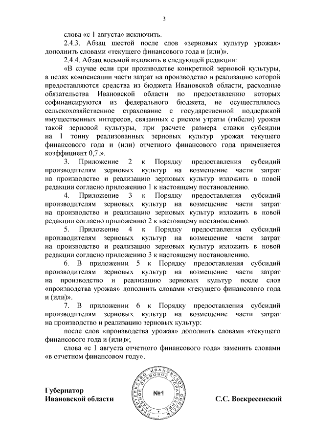 Постановление Правительства Ивановской области от 07.12.2023 N 604-п "О внесении изменений в постановление Правительства Ивановской области от 22.10.2021 N 501-п "Об утверждении Порядка предоставления субсидий производителям зерновых культур на возмещение части затрат на производство и реализацию зерновых культур"