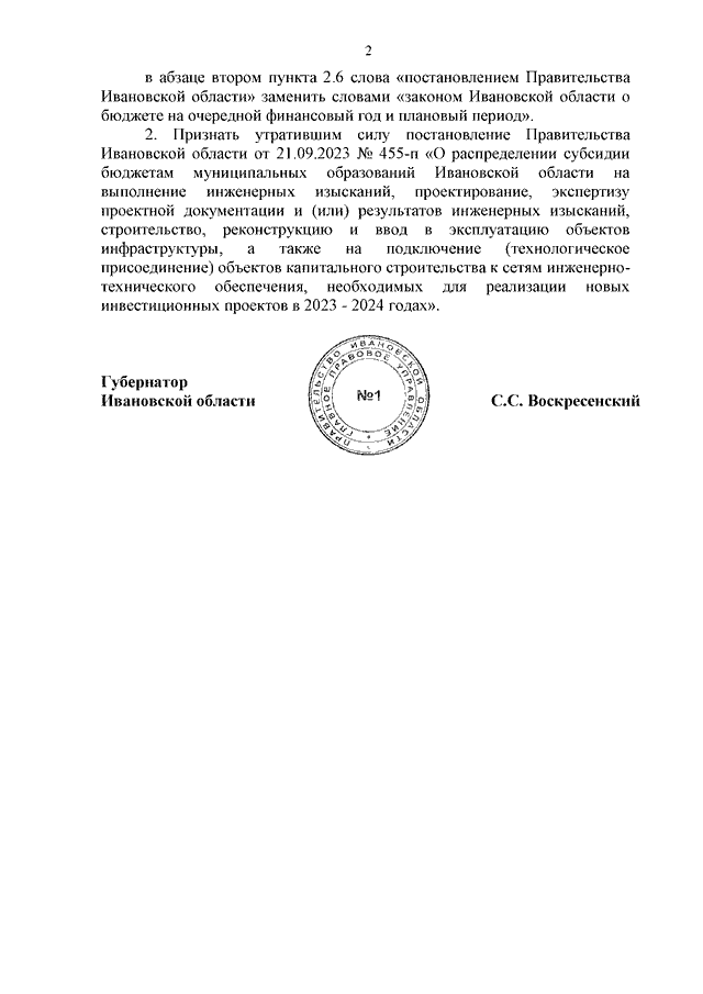 Постановление Правительства Ивановской области от 07.12.2023 N 600-п "О внесении изменения в постановление Правительства Ивановской области от 13.11.2013 N 459-п "Об утверждении государственной программы Ивановской области "Экономическое развитие и инновационная экономика Ивановской области" и признании утратившим силу постановления Правительства Ивановской области от 21.09.2023 N 455-п "О распределении субсидии бюджетам муниципальных образований Ивановской области на выполнение инженерных изысканий, проектирование, экспертизу проектной документации и (или) результатов инженерных изысканий, строительство, реконструкцию и ввод в эксплуатацию объектов инфраструктуры, а также на подключение (технологическое присоединение) объектов капитального строительства к сетям инженерно-технического обеспечения, необходимых для реализации новых инвестиционных проектов в 2023 - 2024 годах"