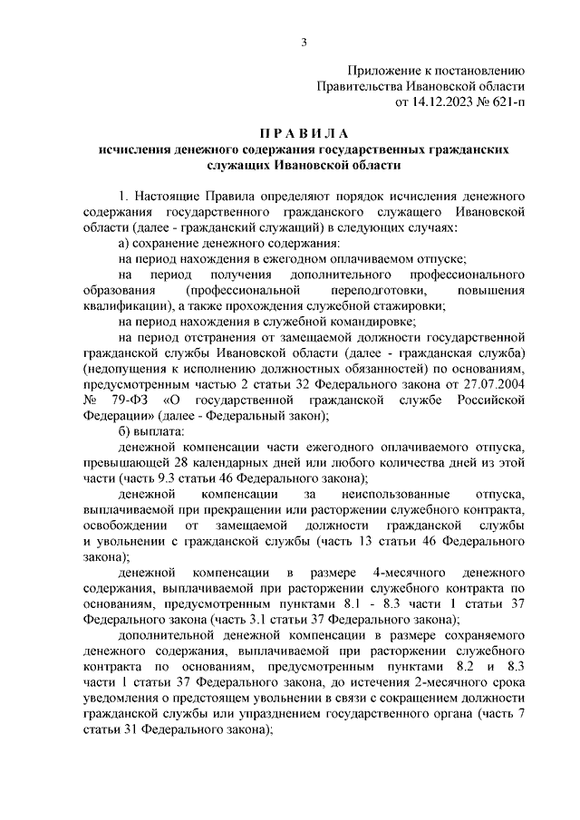 Постановление Правительства Ивановской области от 14.12.2023 N 621-п "Об утверждении Правил исчисления денежного содержания государственных гражданских служащих Ивановской области и о признании утратившими силу некоторых постановлений Правительства Ивановской области"