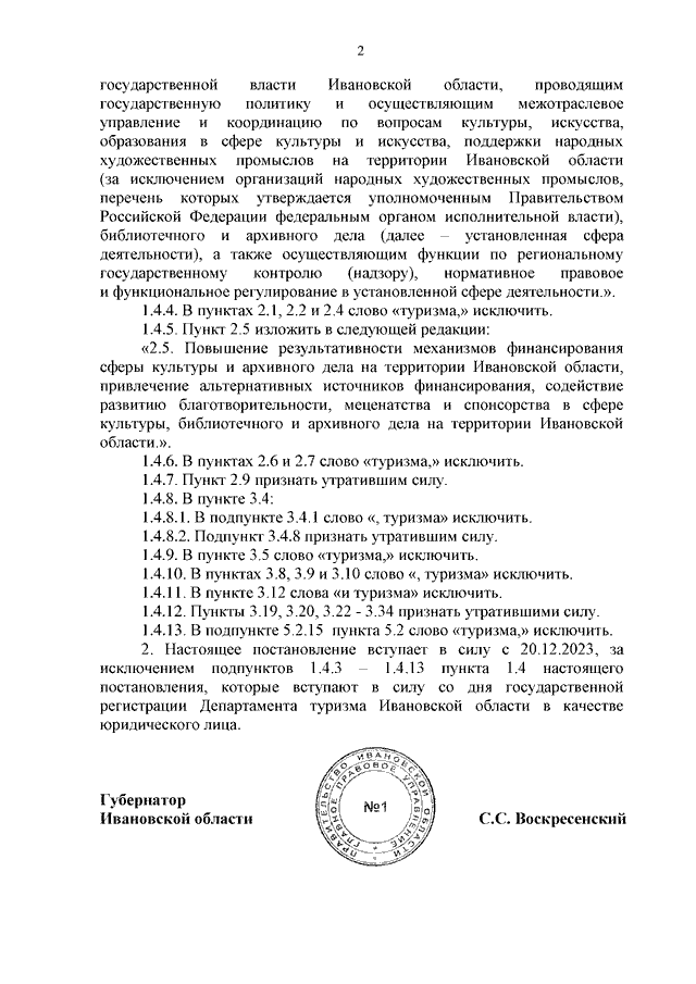 Постановление Правительства Ивановской области от 20.12.2023 N 631-п "О внесении изменений в постановление Правительства Ивановской области от 04.12.2014 N 507-п "Об утверждении Положения о Департаменте культуры и туризма Ивановской области"
