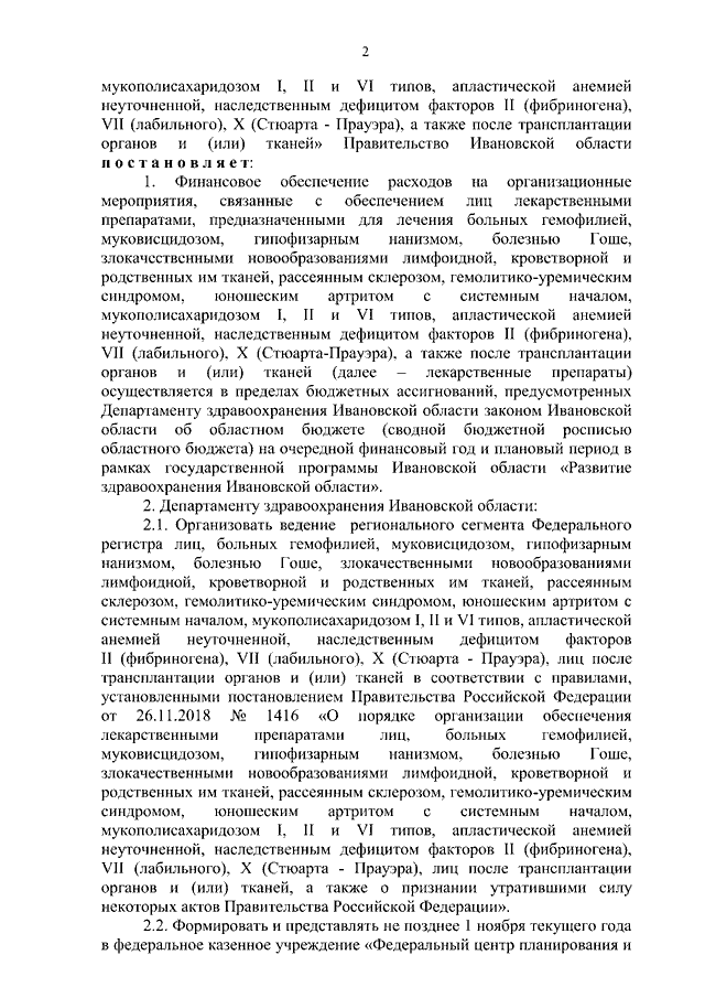 Постановление Правительства Ивановской области от 22.12.2023 N 656-п "Об организации обеспечения лиц лекарственными препаратами, предназначенными для лечения больных гемофилией, муковисцидозом, гипофизарным нанизмом, болезнью Гоше, злокачественными новообразованиями лимфоидной, кроветворной и родственных им тканей, рассеянным склерозом, гемолитико-уремическим синдромом, юношеским артритом с системным началом, мукополисахаридозом I, II и VI типов, апластической анемией неуточненной, наследственным дефицитом факторов II (фибриногена), VII (лабильного), X (Стюарта - Прауэра), лиц после трансплантации органов и (или) тканей"