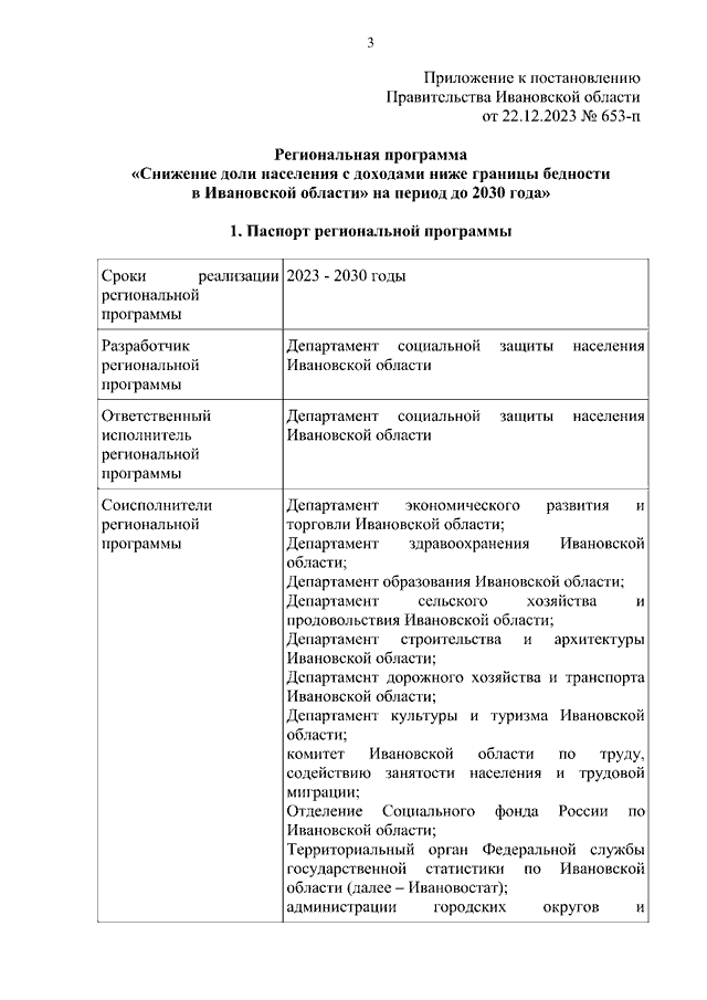 Постановление Правительства Ивановской области от 22.12.2023 N 653-п "Об утверждении региональной программы "Снижение доли населения с доходами ниже границы бедности в Ивановской области" на период до 2030 года"