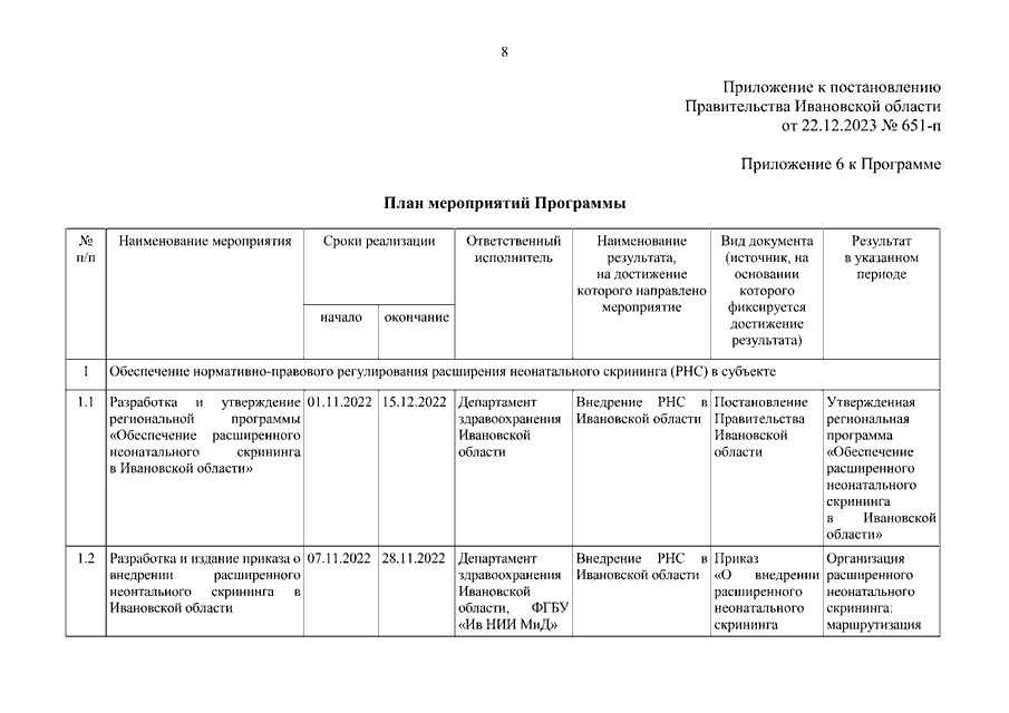 Постановление Правительства Ивановской области от 22.12.2023 N 651-п "О внесении изменений в постановление Правительства Ивановской области от 15.12.2022 N 727-п "Об утверждении региональной программы Ивановской области "Обеспечение расширенного неонатального скрининга в Ивановской области" (вместе с "Планом мероприятий Программы")