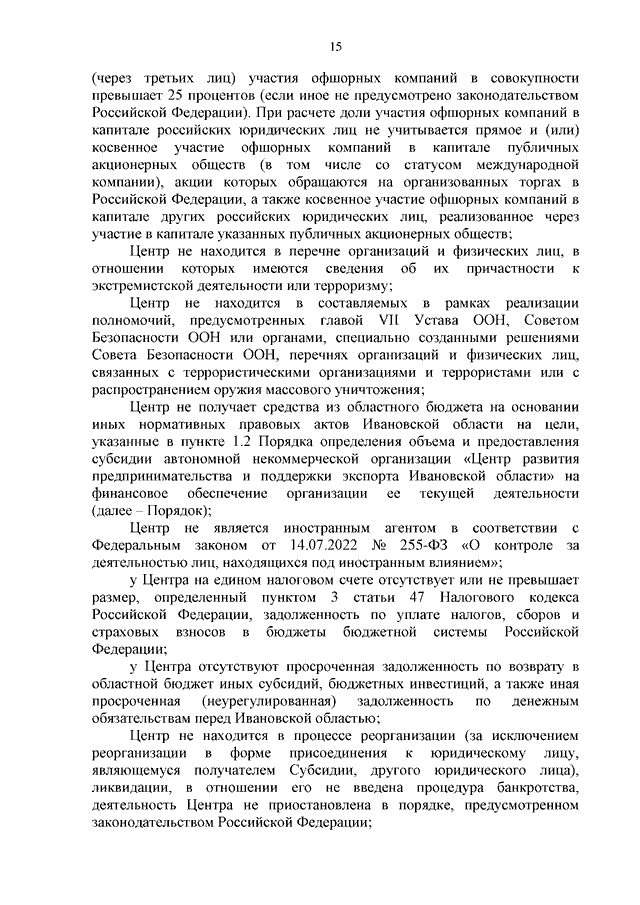 Постановление Правительства Ивановской области от 22.01.2024 N 12-п "О внесении изменений в постановление Правительства Ивановской области от 05.04.2022 N 148-п "Об утверждении Порядка определения объема и предоставления субсидии автономной некоммерческой организации "Центр развития предпринимательства и поддержки экспорта Ивановской области" на финансовое обеспечение организации ее текущей деятельности"