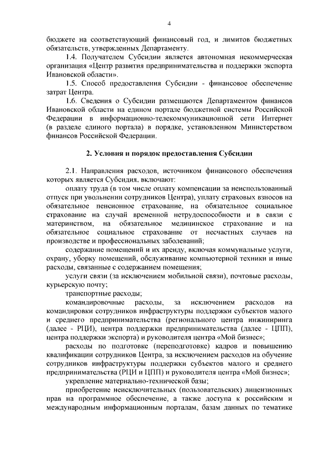 Постановление Правительства Ивановской области от 22.01.2024 N 12-п "О внесении изменений в постановление Правительства Ивановской области от 05.04.2022 N 148-п "Об утверждении Порядка определения объема и предоставления субсидии автономной некоммерческой организации "Центр развития предпринимательства и поддержки экспорта Ивановской области" на финансовое обеспечение организации ее текущей деятельности"