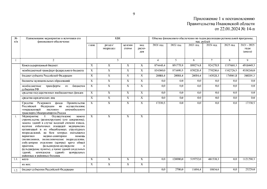 Постановление Правительства Ивановской области от 22.01.2024 N 14-п "О внесении изменений в постановление Правительства Ивановской области от 15.12.2020 N 626-п "Об утверждении Региональной программы модернизации первичного звена здравоохранения Ивановской области на 2021 - 2025 годы"