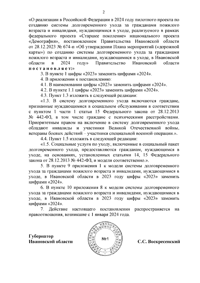 Постановление Правительства Ивановской области от 29.01.2024 N 19-п "О внесении изменений в постановление Правительства Ивановской области от 18.10.2023 N 486-п "О реализации в 2023 году модели системы долговременного ухода за гражданами пожилого возраста и инвалидами, нуждающимися в уходе, в Ивановской области"