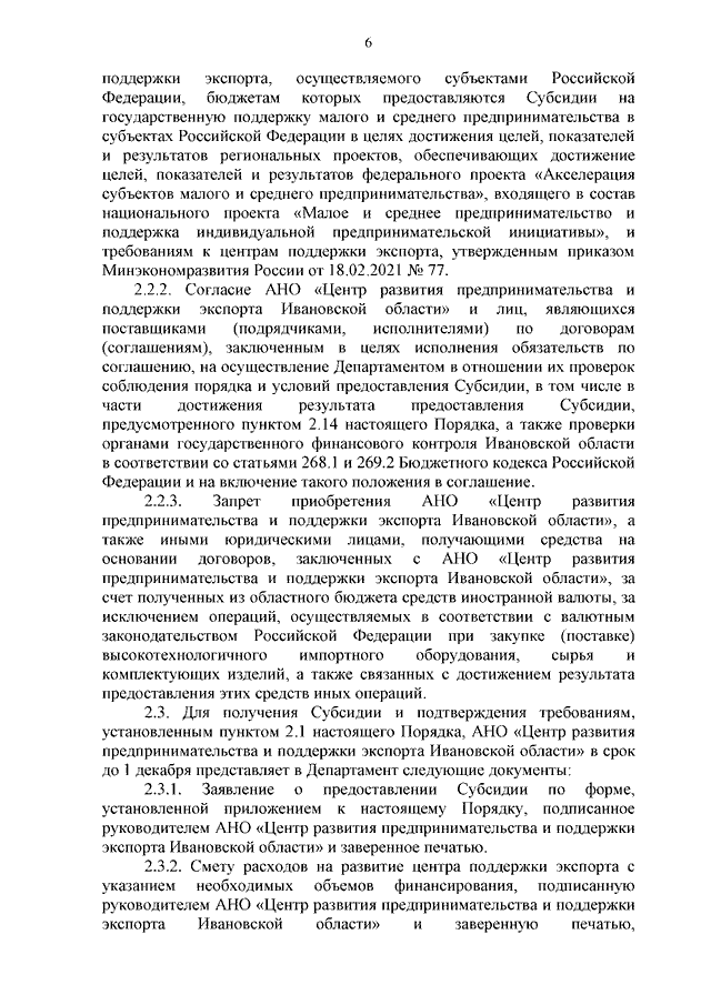 Постановление Правительства Ивановской области от 31.01.2024 N 21-п "О внесении изменений в постановление Правительства Ивановской области от 26.02.2019 N 64-п "Об утверждении Порядка определения объема и предоставления субсидии автономной некоммерческой организации "Центр развития предпринимательства и поддержки экспорта Ивановской области" на развитие центра поддержки экспорта"