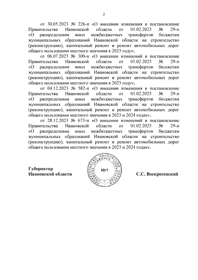 Постановление Правительства Ивановской области от 15.02.2024 N 42-п "О распределении иных межбюджетных трансфертов бюджетам муниципальных образований Ивановской области на строительство (реконструкцию), капитальный ремонт и ремонт автомобильных дорог общего пользования местного значения в 2024 году и о признании утратившими силу некоторых постановлений Правительства Ивановской области"
