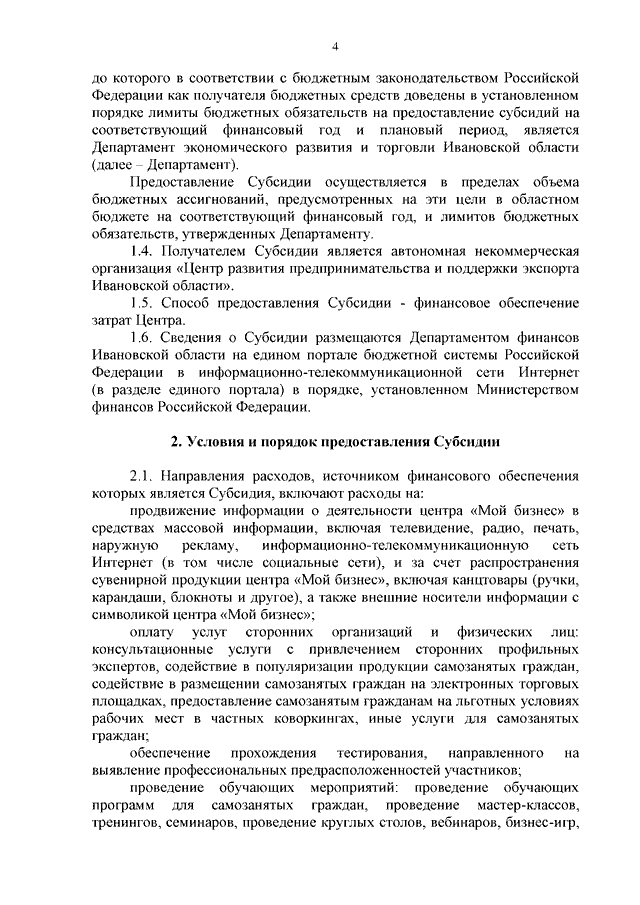 Постановление Правительства Ивановской области от 15.02.2024 N 39-п "О внесении изменений в постановление Правительства Ивановской области от 28.01.2021 N 18-п "Об утверждении Порядка определения объема и предоставления субсидии автономной некоммерческой организации "Центр развития предпринимательства и поддержки экспорта Ивановской области" на предоставление услуг для физических лиц, применяющих специальный налоговый режим "Налог на профессиональный доход"