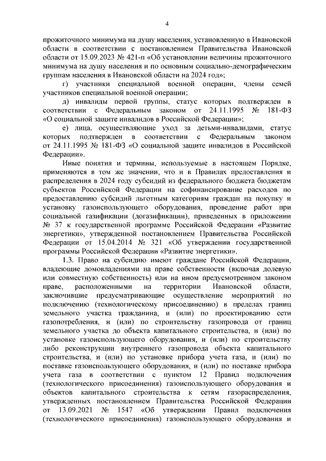 Постановление Правительства Ивановской области от 22.02.2024 N 52-п "О дополнительной мере социальной поддержки граждан в виде предоставления субсидий льготным категориям граждан на покупку и установку газоиспользующего оборудования, проведение работ внутри границ их земельных участков в рамках реализации мероприятий по осуществлению подключения (технологического присоединения) газоиспользующего оборудования и объектов капитального строительства к газораспределительным сетям при догазификации в Ивановской области в 2024 году" (вместе с "Порядком предоставления субсидий льготным категориям граждан на покупку и установку газоиспользующего оборудования, проведение работ внутри границ их земельных участков в рамках реализации мероприятий по осуществлению подключения (технологического присоединения) газоиспользующего оборудования и объектов капитального строительства к газораспределительным сетям при догазификации в Ивановской области в 2024 году")