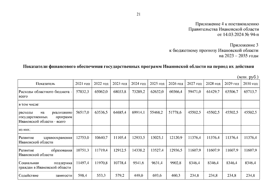 Постановление Правительства Ивановской области от 14.03.2024 N 94-п "О внесении изменений в постановление Правительства Ивановской области от 16.03.2023 N 134-п "Об утверждении бюджетного прогноза Ивановской области на 2023 - 2035 годы"