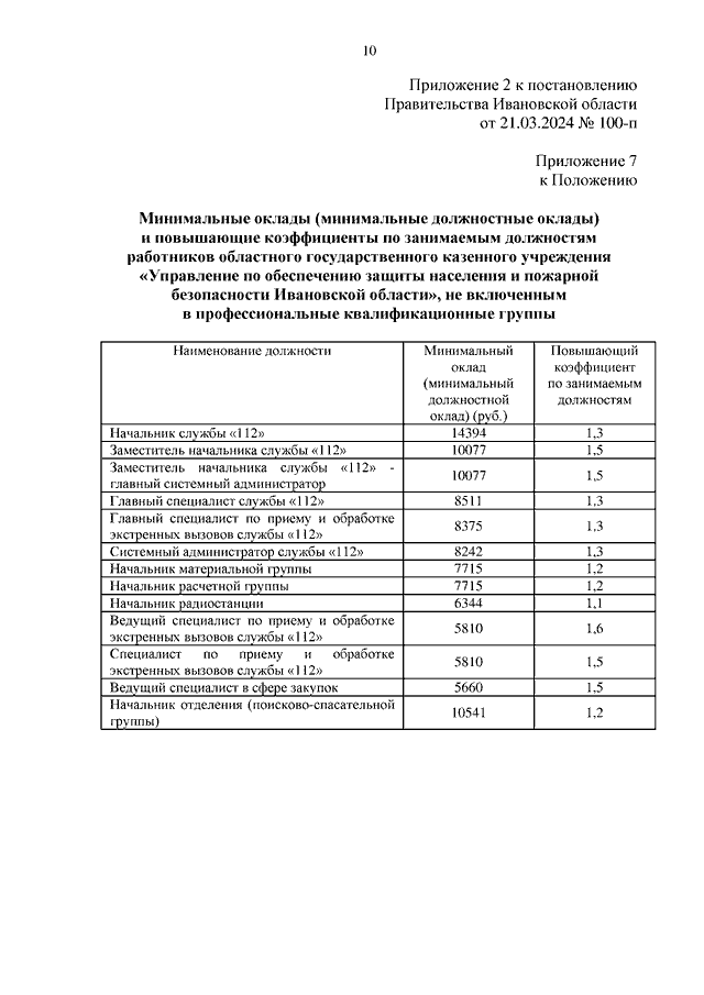 Постановление Правительства Ивановской области от 21.03.2024 N 100-п "О внесении изменений в постановление Правительства Ивановской области от 31.12.2008 N 373-п "О системе оплаты труда работников областного государственного казенного учреждения "Управление по обеспечению защиты населения и пожарной безопасности Ивановской области"