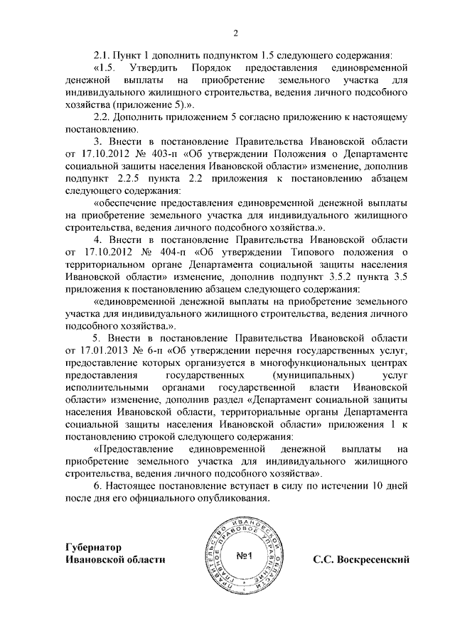Постановление Правительства Ивановской области от 26.03.2024 N 111-п "О внесении изменений в некоторые постановления Правительства Ивановской области" (вместе с "Порядком предоставления единовременной денежной выплаты на приобретение земельного участка для индивидуального жилищного строительства, ведения личного подсобного хозяйства")
