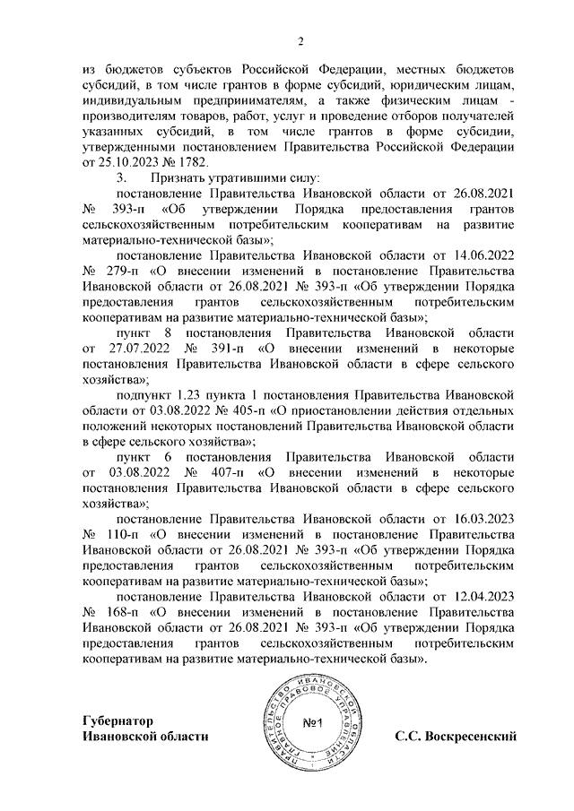 Постановление Правительства Ивановской области от 10.04.2024 N 137-п "Об утверждении Порядка предоставления грантов сельскохозяйственным потребительским кооперативам на развитие материально-технической базы"