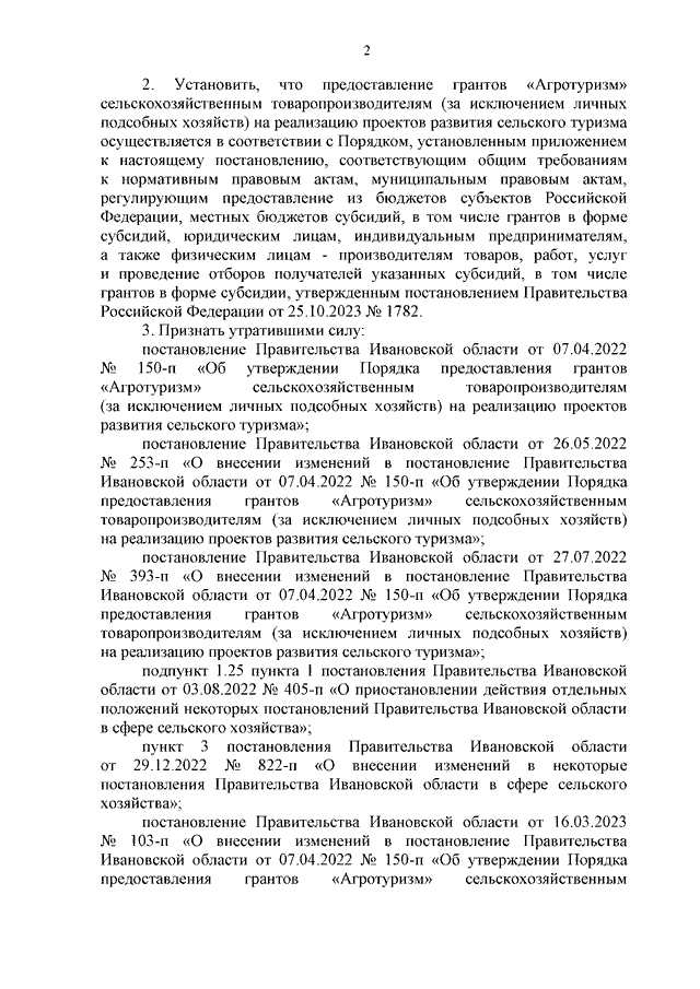 Постановление Правительства Ивановской области от 10.04.2024 N 148-п "Об утверждении Порядка предоставления грантов "Агротуризм" сельскохозяйственным товаропроизводителям (за исключением личных подсобных хозяйств) на реализацию проектов развития сельского туризма"
