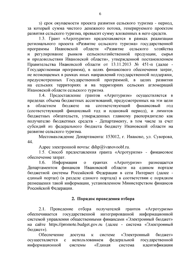 Постановление Правительства Ивановской области от 10.04.2024 N 148-п "Об утверждении Порядка предоставления грантов "Агротуризм" сельскохозяйственным товаропроизводителям (за исключением личных подсобных хозяйств) на реализацию проектов развития сельского туризма"