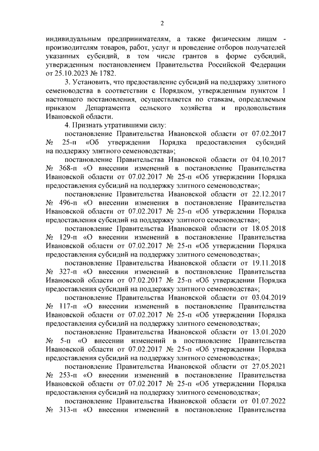 Постановление Правительства Ивановской области от 18.04.2024 N 161-п "Об утверждении Порядка предоставления субсидий на поддержку элитного семеноводства"
