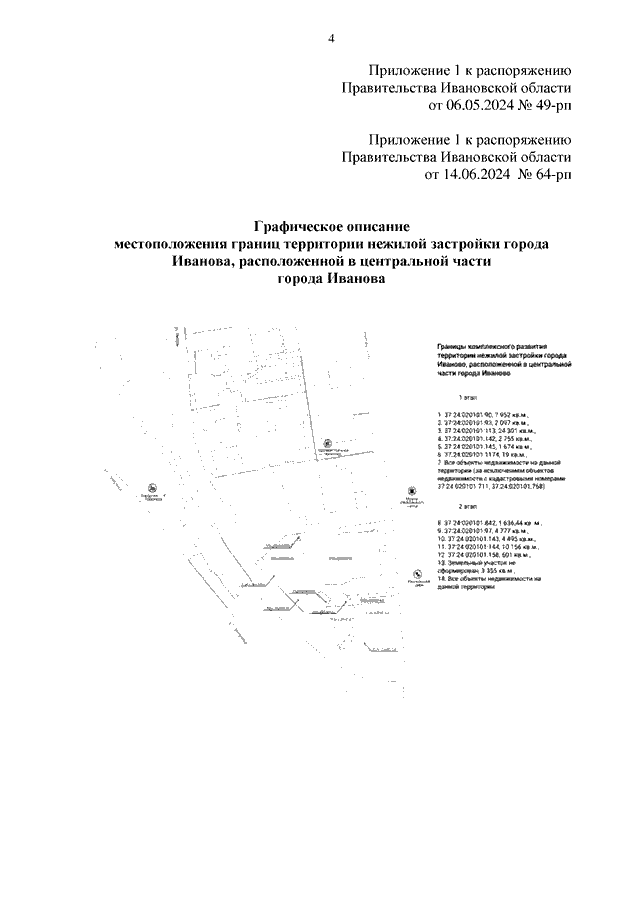 Распоряжение Правительства Ивановской области от 06.05.2024 N 49-рп "О внесении изменений в распоряжение Правительства Ивановской области от 14.06.2022 N 64-рп "О принятии решения о комплексном развитии территории нежилой застройки города Иванова, расположенной в центральной части города Иванова"