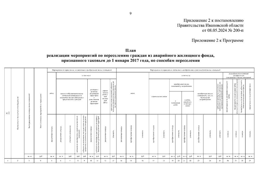 Постановление Правительства Ивановской области от 08.05.2024 N 200-п "О внесении изменений в постановление Правительства Ивановской области от 09.04.2019 N 131-п "Об утверждении региональной адресной программы "Переселение граждан из аварийного жилищного фонда на территории Ивановской области на 2019 - 2024 годы" (вместе с "Перечнем многоквартирных домов, признанных аварийными до 1 января 2017 года", "Планом реализации мероприятий по переселению граждан из аварийного жилищного фонда, признанного таковым до 1 января 2017 года, по способам переселения")