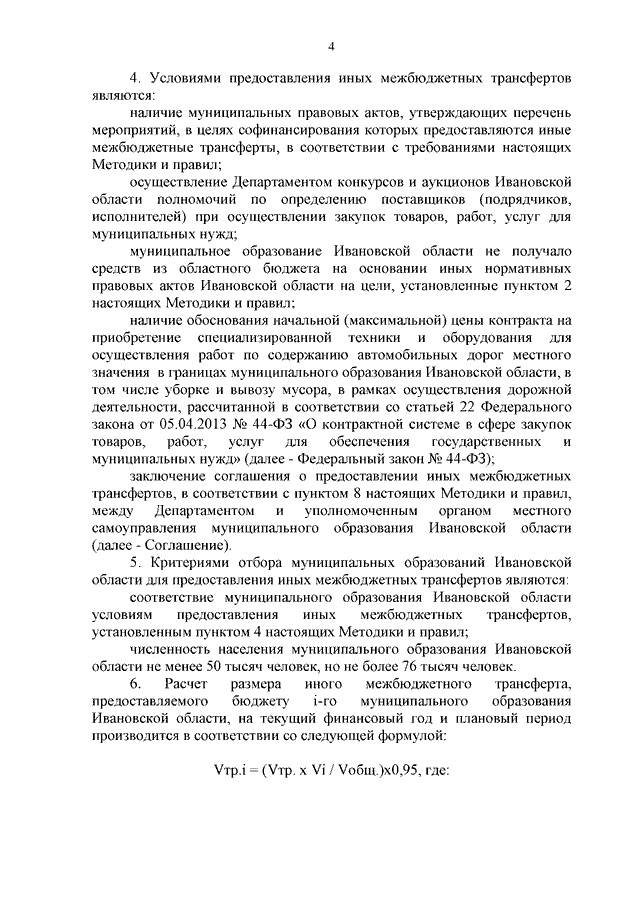 Постановление Правительства Ивановской области от 14.05.2024 N 209-п "Об утверждении Методики распределения и правил предоставления из областного бюджета иных межбюджетных трансфертов бюджетам муниципальных образований Ивановской области на приобретение специализированной техники и оборудования для организации осуществления дорожной деятельности в отношении автомобильных дорог местного значения в границах муниципального образования и участия в организации деятельности по сбору и транспортированию твердых коммунальных отходов в 2024 году" (вместе с "Методикой распределения и правилами предоставления из областного бюджета иных межбюджетных трансфертов бюджетам муниципальных образований Ивановской области на приобретение органом местного самоуправления муниципального образования Ивановской области специализированной техники и оборудования для организации осуществления дорожной деятельности в отношении автомобильных дорог местного значения в границах муниципального образования и участия в организации деятельности по сбору и транспортированию твердых коммунальных отходов в 2024 году")