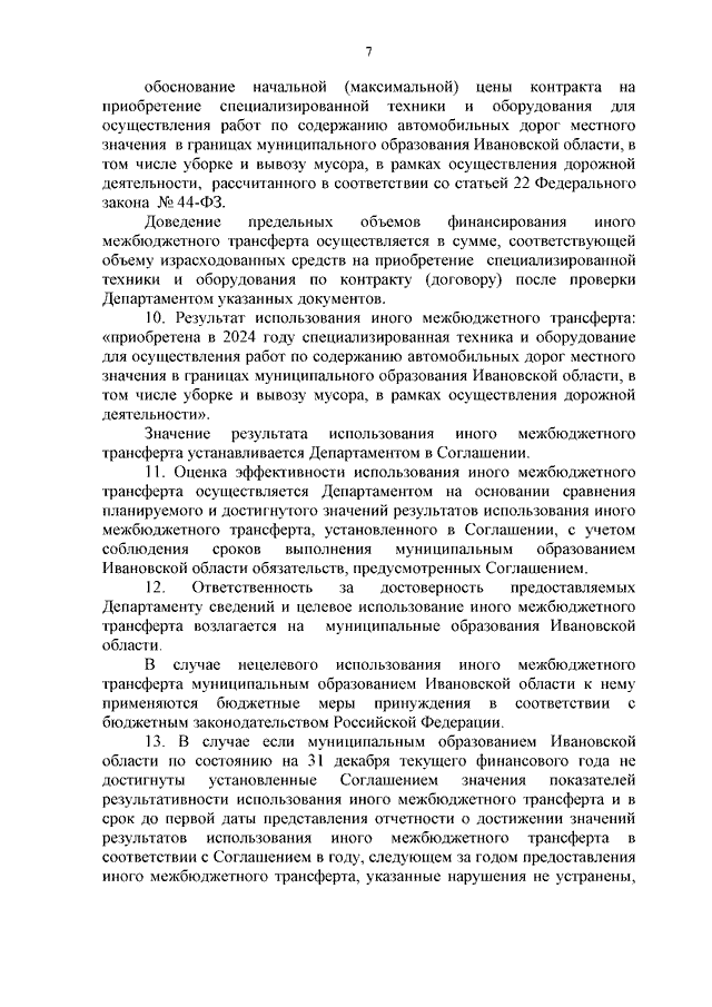 Постановление Правительства Ивановской области от 14.05.2024 N 209-п "Об утверждении Методики распределения и правил предоставления из областного бюджета иных межбюджетных трансфертов бюджетам муниципальных образований Ивановской области на приобретение специализированной техники и оборудования для организации осуществления дорожной деятельности в отношении автомобильных дорог местного значения в границах муниципального образования и участия в организации деятельности по сбору и транспортированию твердых коммунальных отходов в 2024 году" (вместе с "Методикой распределения и правилами предоставления из областного бюджета иных межбюджетных трансфертов бюджетам муниципальных образований Ивановской области на приобретение органом местного самоуправления муниципального образования Ивановской области специализированной техники и оборудования для организации осуществления дорожной деятельности в отношении автомобильных дорог местного значения в границах муниципального образования и участия в организации деятельности по сбору и транспортированию твердых коммунальных отходов в 2024 году")