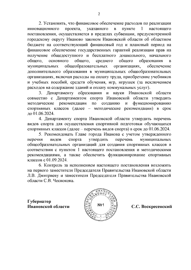 Постановление Правительства Ивановской области от 20.05.2024 N 215-п "О реализации в период с 2024 по 2032 годы инновационного проекта по созданию и функционированию в муниципальных образовательных организациях Ивановской области спортивных классов для обучающихся, проходящих спортивную подготовку"