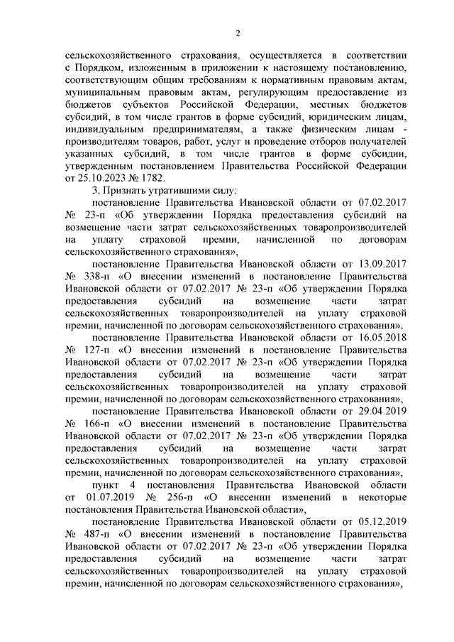 Постановление Правительства Ивановской области от 20.05.2024 N 217-п "Об утверждении Порядка предоставления субсидий на возмещение части затрат сельскохозяйственных товаропроизводителей на уплату страховой премии, начисленной по договорам сельскохозяйственного страхования"