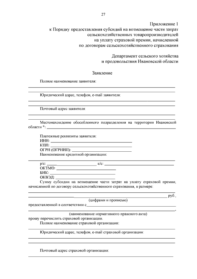 Постановление Правительства Ивановской области от 20.05.2024 N 217-п "Об утверждении Порядка предоставления субсидий на возмещение части затрат сельскохозяйственных товаропроизводителей на уплату страховой премии, начисленной по договорам сельскохозяйственного страхования"