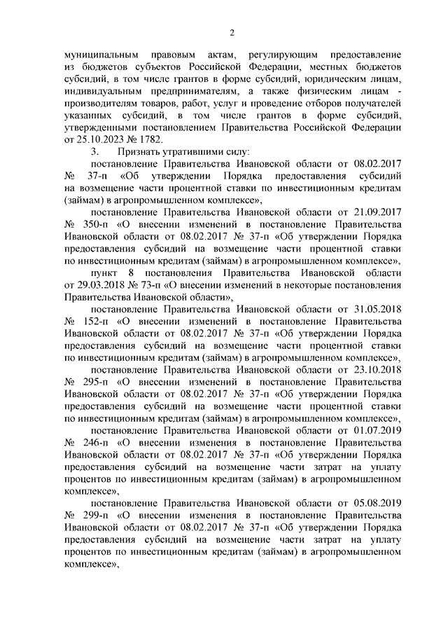 Постановление Правительства Ивановской области от 10.06.2024 N 250-п "Об утверждении Порядка предоставления субсидий на возмещение части затрат на уплату процентов по инвестиционным кредитам (займам) в агропромышленном комплексе"