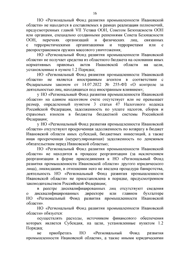 Постановление Правительства Ивановской области от 10.06.2024 N 253-п "О внесении изменений в постановление Правительства Ивановской области от 25.01.2023 N 16-п "Об утверждении Порядка определения объема и предоставления субсидии некоммерческой организации "Региональный Фонд развития промышленности Ивановской области" на обеспечение ее деятельности (докапитализацию) в виде имущественного взноса Ивановской области на реализацию инвестиционных проектов субъектами деятельности в сфере промышленности"