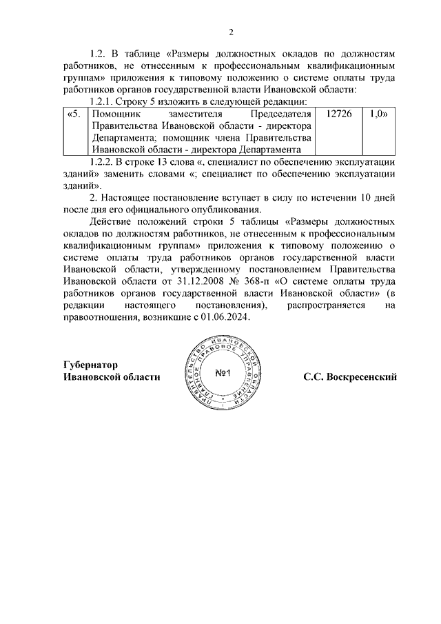 Постановление Правительства Ивановской области от 24.06.2024 N 271-п "О внесении изменений в постановление Правительства Ивановской области от 31.12.2008 N 368-п "О системе оплаты труда работников органов государственной власти Ивановской области"