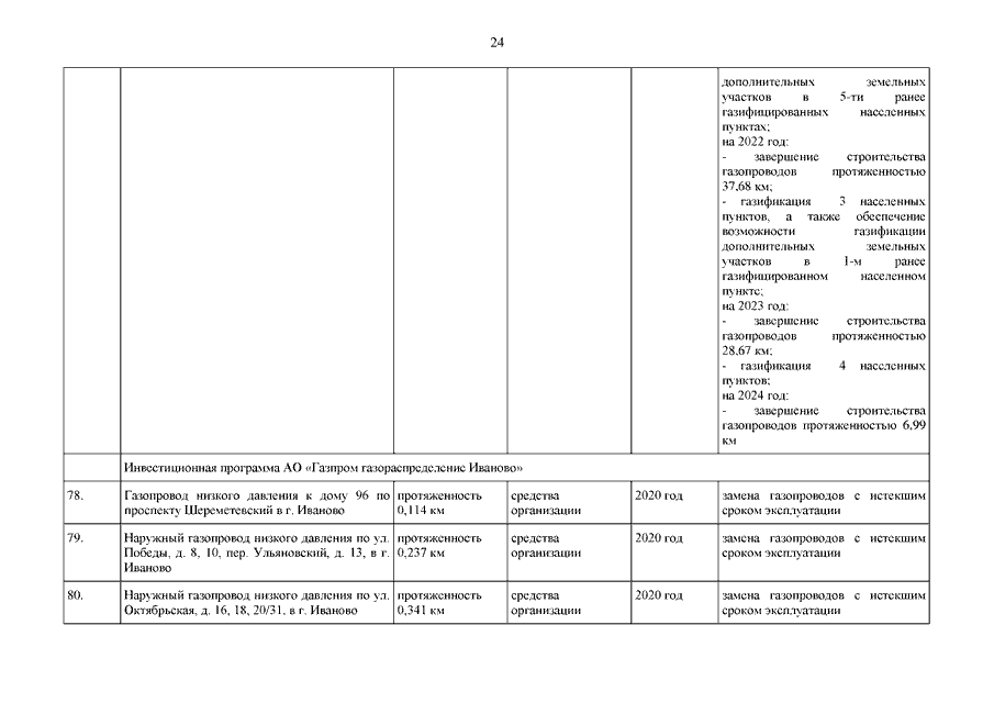 Постановление Правительства Ивановской области от 27.06.2024 N 278-п "О внесении изменений в постановление Правительства Ивановской области от 28.12.2020 N 678-п "Об утверждении региональной Программы газификации жилищно-коммунального хозяйства, промышленных и иных организаций Ивановской области на 2020 - 2030 годы" (вместе со "Сводным планом-графиком догазификации", "Пообъектным планом-графиком догазификации")