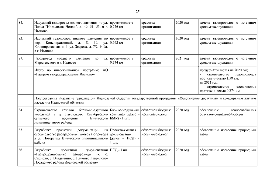 Постановление Правительства Ивановской области от 27.06.2024 N 278-п "О внесении изменений в постановление Правительства Ивановской области от 28.12.2020 N 678-п "Об утверждении региональной Программы газификации жилищно-коммунального хозяйства, промышленных и иных организаций Ивановской области на 2020 - 2030 годы" (вместе со "Сводным планом-графиком догазификации", "Пообъектным планом-графиком догазификации")