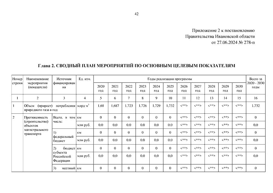 Постановление Правительства Ивановской области от 27.06.2024 N 278-п "О внесении изменений в постановление Правительства Ивановской области от 28.12.2020 N 678-п "Об утверждении региональной Программы газификации жилищно-коммунального хозяйства, промышленных и иных организаций Ивановской области на 2020 - 2030 годы" (вместе со "Сводным планом-графиком догазификации", "Пообъектным планом-графиком догазификации")